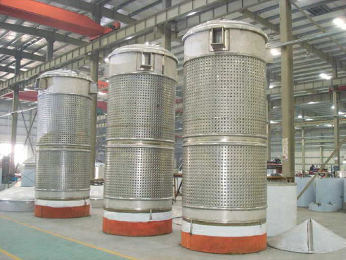 發酵設備罐型可分為兩大類:一類是嫌氣發酵的罐型(如酒精發酵),另一類是為了氣發酵的罐型(如標準式、伍式、自吸式等)。這類設備尤以標準式罐型使用最為普遍。我公司設計的發酵罐系列圖紙資料屬于標準式罐型,這種罐型當公稱容積在6m3以下時罐采用夾套式。發酵氣的冷卻或加熱,均由夾套來完成。公稱容積為6m3以上時,發酵氣的冷卻由立式排管來擔負,在罐內排管的連接方面我們作了改進。這主要避免在罐體上多開孔,開成死角。這種連續方式在實際使用中得到滿意的效果。